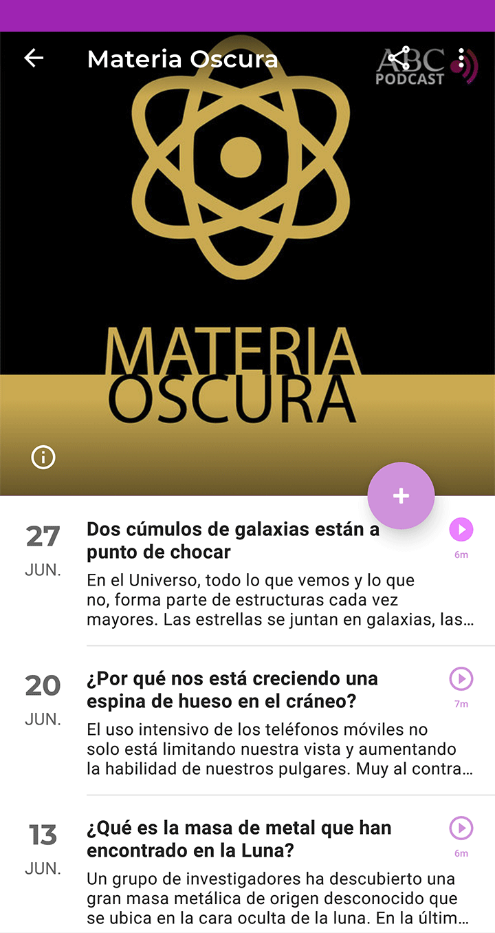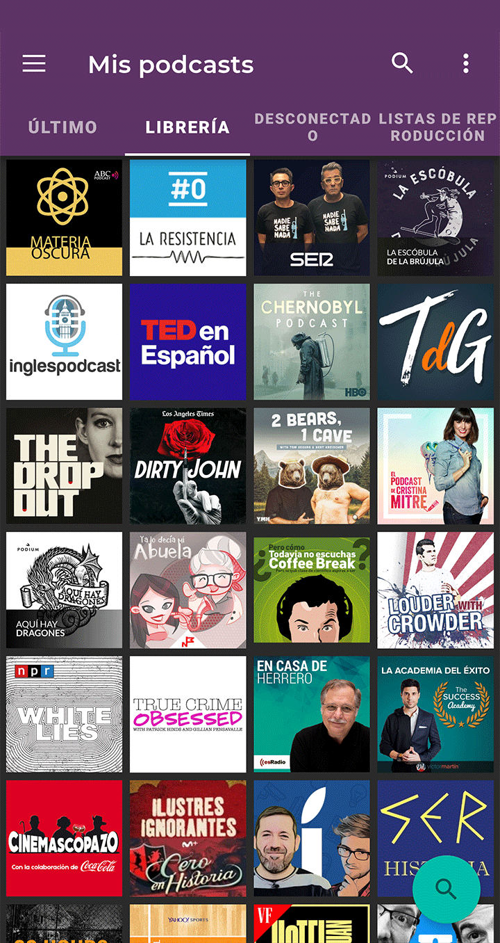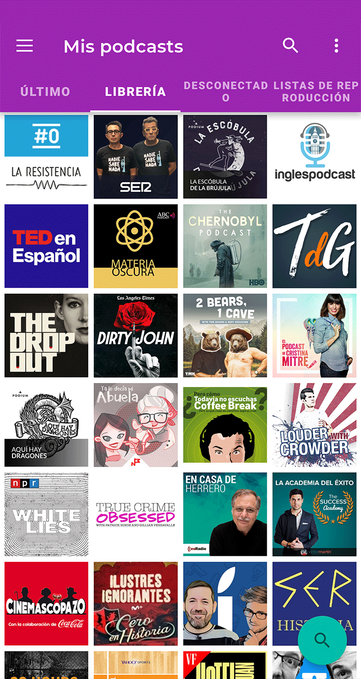 Puedes ver una biblioteca de todos los podcasts a los que estás suscrito o una sencilla lista de los episodios más recientes de tus podcasts favoritos.