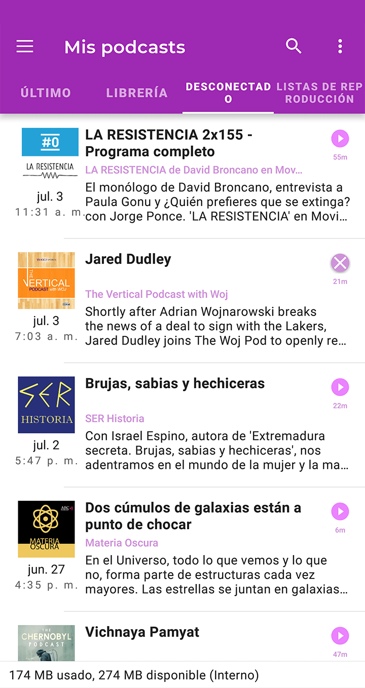 ¿Estás a punto de subirte a un avión? Descarga los episodios de podcasts para escucharlos sin conexión. También puedes usar esta función para descargarte los episodios seleccionados mientras estás conectado a una red wifi y te ahorres esa valiosa conexión de datos si tienes una tarifa de datos limitada.